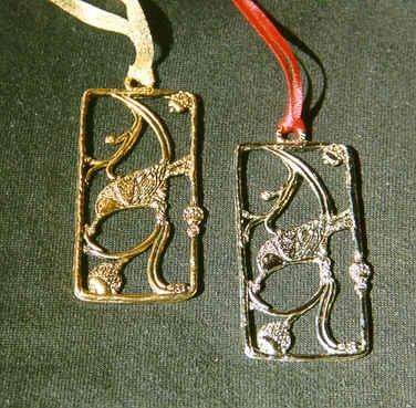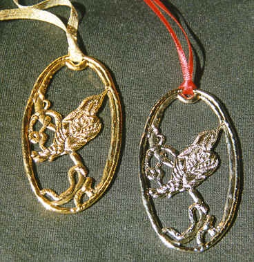 Nancy designed and sculpted these charming ornaments, which are cast in solid pewter, with the Warbler and Nuthatch layered in your choice of either nickel or 24k gold. They make wonderful Christmas ornaments, personal gifts, office rewards, and home decorations. Think how beautiful they would look displayed in a window year-round.