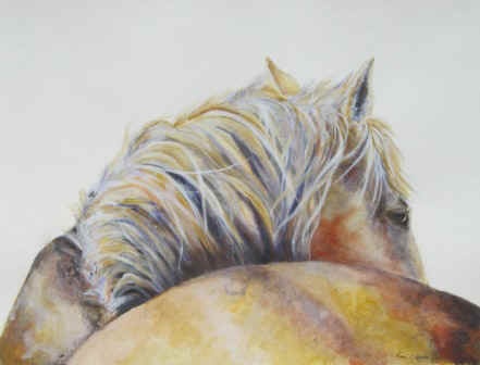 "Serenity" is fourth in a series of cards dedicated to celebrating the inner beauty and spirit of the horse. It is reproduced from my original watercolor painting of my own quarter horse, shown reflecting the colors of the setting sun. It is printed on a framable A7 (5" x 7") card, which is provided with a metallic pearlized gold colored envelope.