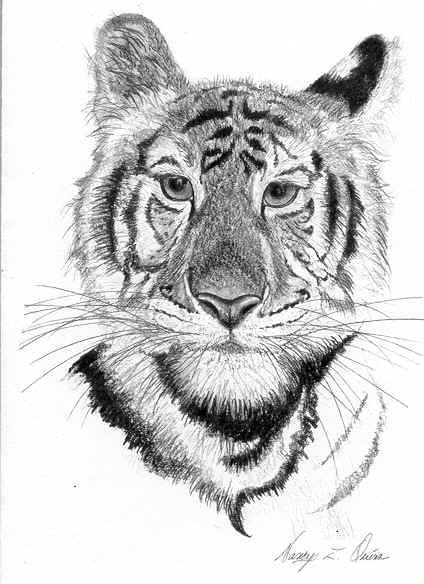 This notecard is a reproduction of an original Bengal tiger drawing created on parchment. Nancy studied and worked with this tiger to create this artwork . It is suitable for framing and also includes interesting facts and information about the tiger and his habitat on the back of the card. Each card set includes high quality white envelopes. These cards make thoughtful gifts and any correspondence special.