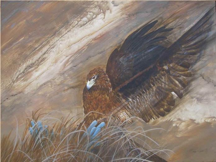 "The Strike" is reproduced on acid free museum quality paper. The image itself measures 30"x 40" (with borders, the actual dimensions are 33 1/4" x 43 3/4"). It is the largest limited edition in the collection. The inspiration for this artwork is Nancy's personal experience, watching Golden Eagles in the wild, including a nesting pair at her home in rural Montana. "The Strike" is a study in both movement and raw emotion, with attention to exquisit detail and color. This unique and dramatic print will make you glad you came into the room!